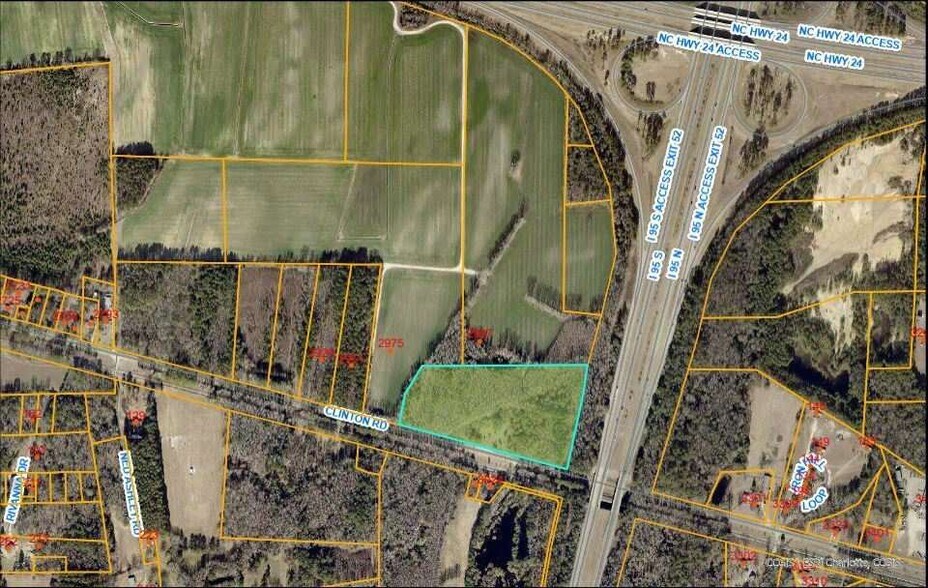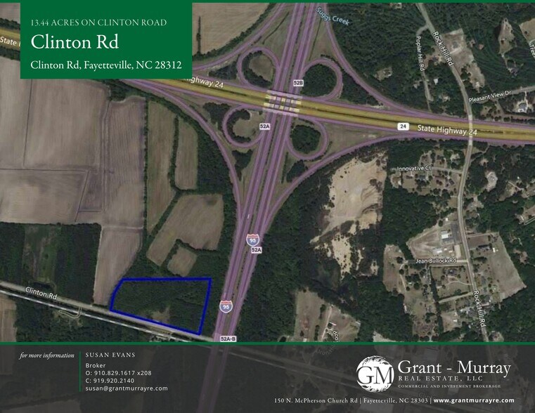 The property consists of 13.44 acres of land located on Clinton Road in Fayetteville, North Carolina. It is zoned MP (Planned Industrial) and is situated near the intersection of Interstate 95 and State Highway 24.