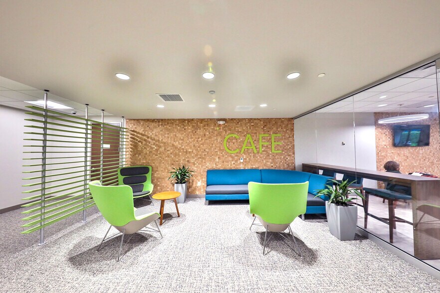 On-site management, expandable parking, loading available, beach volleyball court, cafeteria, and outdoor seating