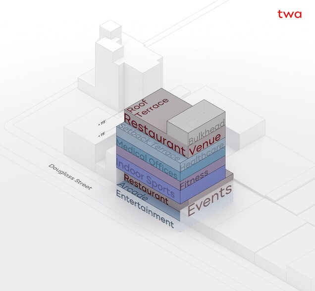 Additional zoning incentives further enhance the development potential: Arcade Bonus - An arcade along Douglass Street can generate a significant floor area bonus: