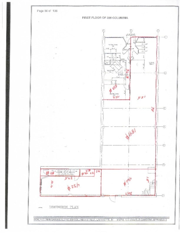 L'espace disponible à la location offre aux locataires la rare opportunité d'installer leur entreprise dans un magnifique bâtiment historique bien entretenu surplombant le palais de justice du comté de Tippecanoe. La suite abritait autrefois le service de fermeture de Stallard and Schuh Title Company. La lumière naturelle inonde la suite, qui présente de hauts plafonds et de magnifiques détails architecturaux historiques. Des places de stationnement dans la rue desservent l'établissement, en plus des parkings du comté et de la ville. L'entrée du garage de stationnement du comté est située sur Columbia Street à moins d'un pâté de maisons de l'établissement et le garage de stationnement de la ville se trouve sur la 5e rue. La suite est située dans le quartier central des affaires du centre-ville de Lafayette et siège du comté de Tippecanoe. Un nombre croissant de résidents s'installent dans la région à la fois dans des unités multifamiliales, des condos et des maisons existants et dans un pipeline de développement en plein essor de nouveaux logements multifamiliaux. Vous trouverez de nombreux magasins et restaurants à quelques pas de l'établissement. En outre, l'établissement se trouve à environ 1,6 km du campus principal de l'université Purdue.