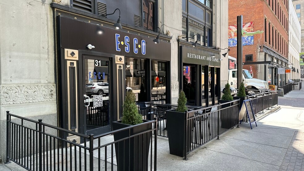 Fully Equipped Restaurant for Lease Approx. 3,330 sf 31 East Gay St. Prime location! Bar: Roll up door to accommodate outdoor dining & serving Outside seating can sit 20-35 Indoor & outdoor seating available: Seating for 40-50 people inside Approx 8 tables inside Outside seating sits 20-30 people Inside Mezzanine Space: Seats 20-25 people What’s in the kitchen: Ansul Hood Two (2) Fryers Gas stove Stainless steel appliances including: 4 Stainless steel Prep tables One (1) 3 bowl sinks One (1) 2 single sinks One (1) stainless steel dishwasher One (1) Grease Trap