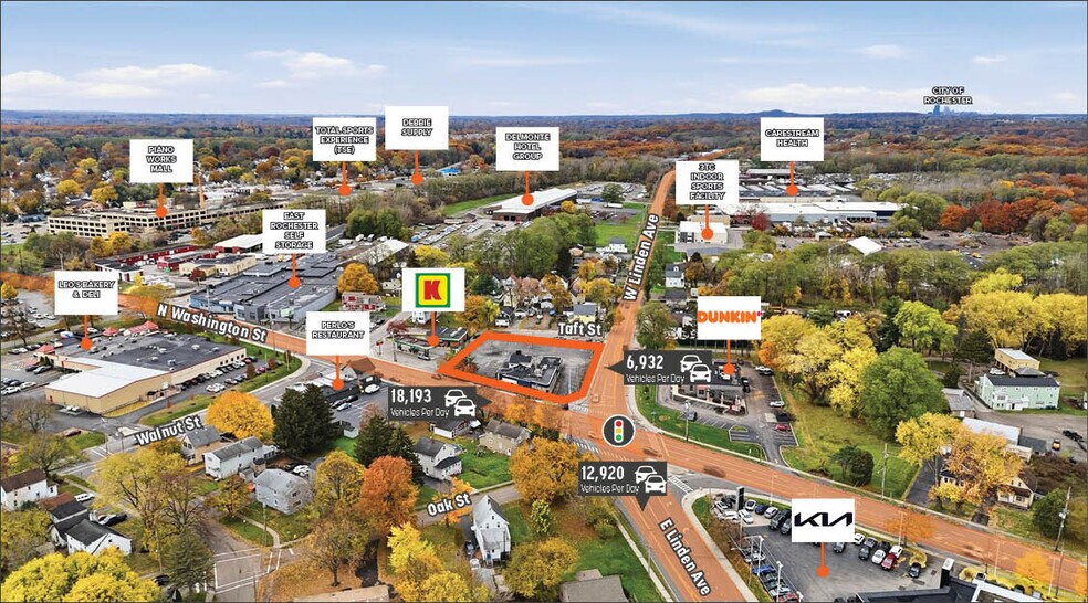 The location sits within East Rochester, a vibrant village known for its community-oriented atmosphere and strategic access to surrounding suburbs like Pittsford and Penfield. The area benefits from a healthy mix of residential neighborhoods, schools, and municipal services, creating a steady flow of local traffic. Just minutes from Piano Works Mall and the shops at Pittsford Plaza, the location enjoys close proximity to national retailers. East Rochester’s walkable downtown offers boutique shopping, dining, and professional services, while nearby arterial roads and Route 153 ensure easy regional connectivity. This dynamic, retail-friendly environment supports a wide range of commercial opportunities.