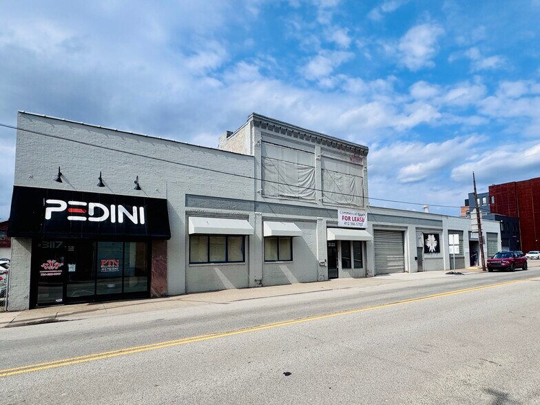 3117-3131 Penn Avenue, au cœur du Strip District. Le strip abrite la Three Rivers Mothers' Milk Bank, PPG Paints, Panthro Fitness et un magasin d'artisanat. Juste à l'angle du pont de la 31e rue et de Penn Avenue. Commerce de détail, bureau et entrepôt