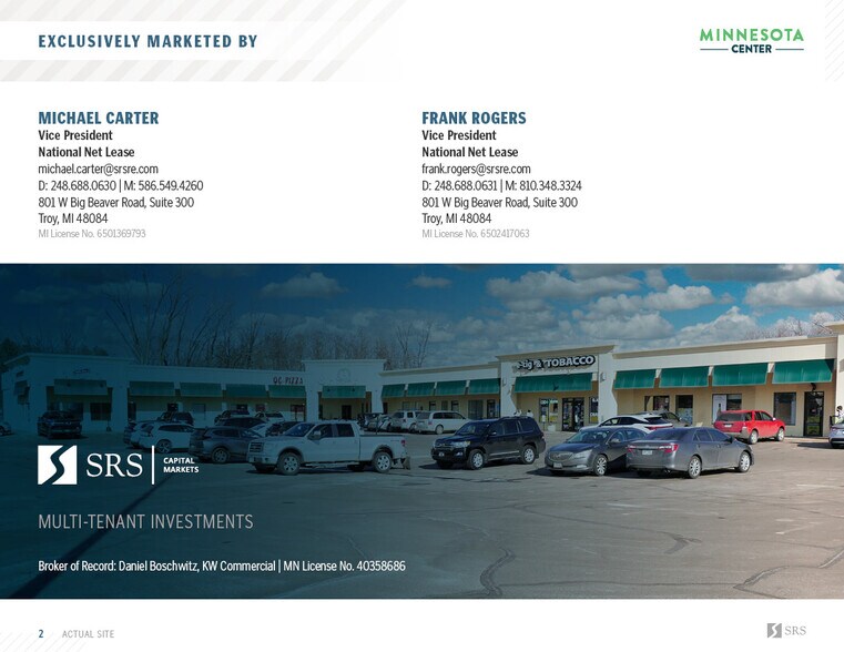 SRS Multi-Tenant Investments is pleased to offer the opportunity to acquire the fee simple interest (land and building ownership) in a 19,817 SF, 100% leased strip center located in Mahtomedi, Minnesota. The tenant mix includes retail, restaurant, and service users, all with fixed rental rate increases throughout their terms—steadily growing NOI and providing a hedge against inflation. Several tenants, including Mahtomedi Liquor, Real Estate Holdings, and QC Pizza, have extension options. All tenants operate under NNN leases, reimbursing their pro rata share of operating expenses and minimizing landlord expense leakage.