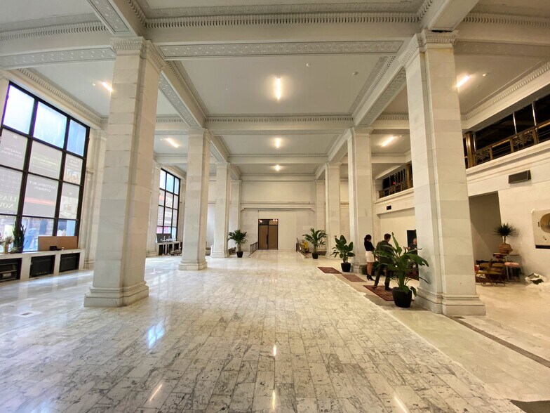 - L'espace commercial comprend des plafonds de 26 pieds, un coffre de banque historique, des sols en marbre et des colonnes de piliers partout