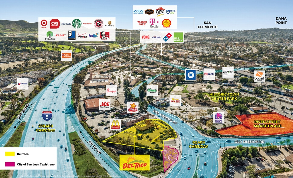 - The Subject Property features five (5) parcels totaling 1.12 acres of land with leases signed by Del Taco and the City of San Juan Capistrano.