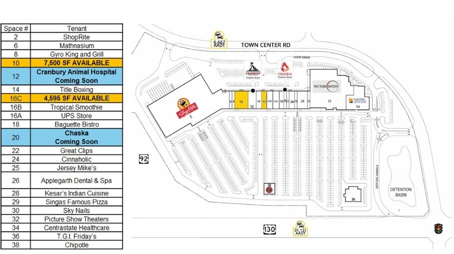 East Windsor Town Center is located at a traffic light on Rt. 130 at the intersection of Town Center Rd. and Hightstown Bypass Rd. with a collective 56,000 cars per day. The subject property received 2.8 million visits in the last 12 months per Placer ai.; Based on number of visits Placer has ranked ShopRite as #19 out of 137 locations in NJ; Chipotle ranked #30 out of 81 locations in NJ; Great Clips ranked #14 out of 61 in NJ.