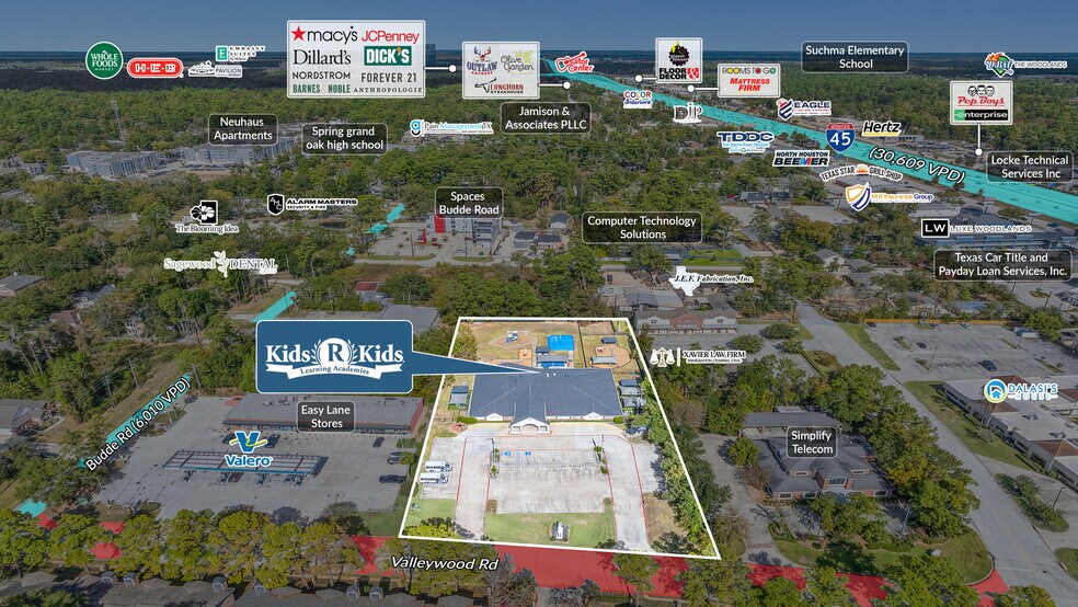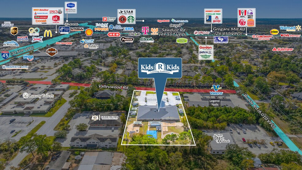 Sands Investment Group is pleased to exclusively present for sale the 12,152 SF Kids ‘R’ Kids facility located at 320 Valleywood Drive in The Woodlands, Texas. This offering includes consistent year-over-year unitlevel EBITDAR growth for the location, highlighting strong operational performance and providing an attractive, stable investment opportunity.
