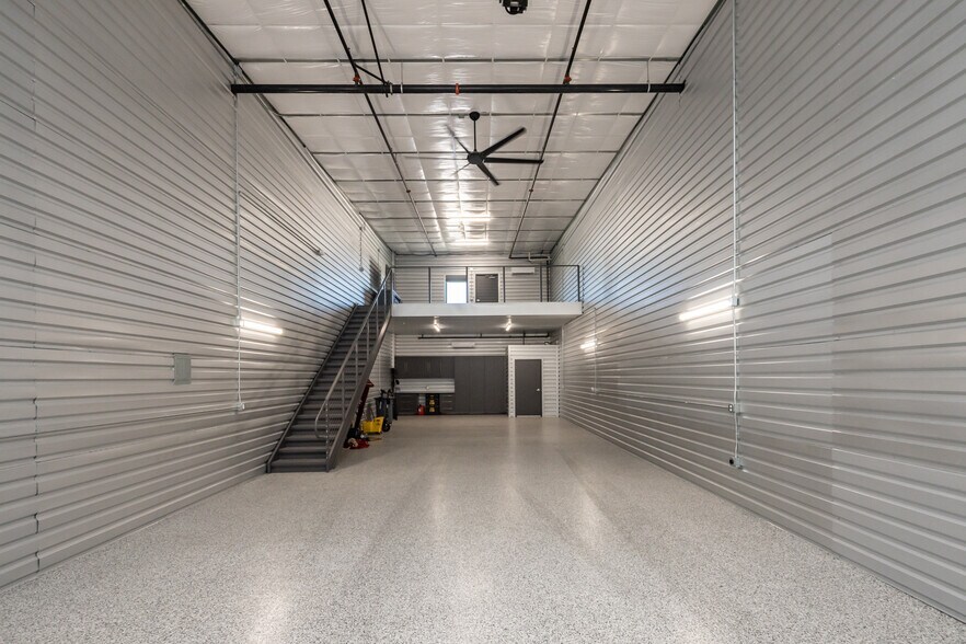 - 400 sq ft steel mezzanine offers lake views and direct access to a private exterior patio