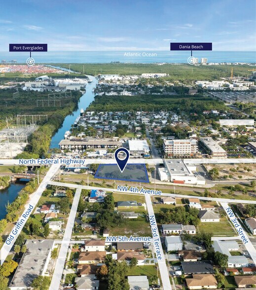 Colliers est fière de présenter la 321 N. Federal Highway, un site de premier choix de 0,78 acre zoné en centre-ville, situé dans le centre d'activités régional (RAC) de Dania Beach. Cet emplacement idéal se trouve à l'est de l'I-95, entre Griffin Road et Stirling Road, offrant une excellente accessibilité et la proximité de l'aéroport international de Fort Lauderdale-Hollywood. La désignation RAC offre une flexibilité de développement significative, s'adaptant à une variété d'utilisations, y compris des installations résidentielles, hôtelières, commerciales, de bureaux et communautaires.