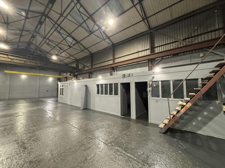 Internally provides open-plan warehouse accommodation with insulated panel roof incorporating light panels allowing for excellent levels of natural daylight. Existing offices and staff welfare facilities provided. The floor area above the offices is load bearing and can be used for mezzanine storage.