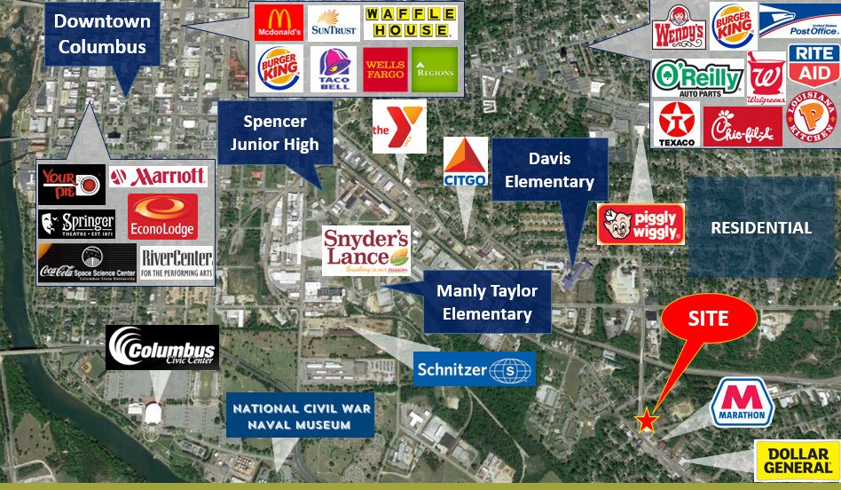 Located just minutes from Uptown Columbus and proximate to major employers and thoroughfares, this site blends visibility, functional design, and adaptability for both owner-users and investors seeking stable long-term occupancy or redevelopment potential