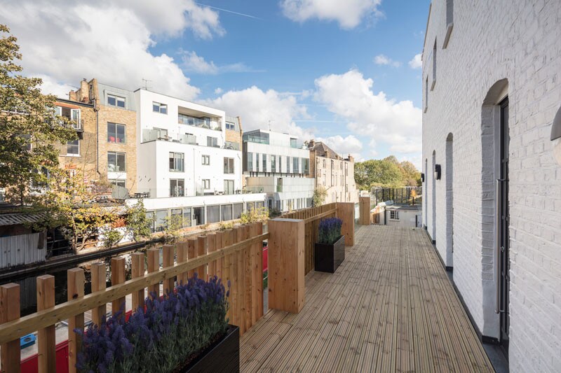Comprising two architecturally striking buildings with exceptional natural light, generous terraces, and industrial character, The Studio offers an ideal environment for progressive occupiers. Building A features a prominent Kensal Road frontage, an impressive contemporary reception, a self-contained ground floor showroom space, and a dramatic saw-tooth roof on the upper floor. Building B overlooks the canal and offers open balconies, waterside terraces, and flexible workspace that supports collaboration, events, and creative production.