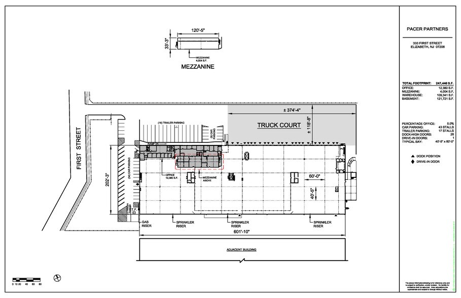 Le 327-347 1st Street offre la flexibilité nécessaire pour répondre aux exigences opérationnelles d'un large éventail d'utilisations et constitue un excellent choix pour toute entreprise ayant besoin d'un accès à une main-d'œuvre nombreuse et à un emplacement offrant un accès inégalé à New York, à Port Newark/Elizabeth et à toutes les principales autoroutes de la région des trois États, y compris les routes 1 et 9, la route 78 et l'autoroute à péage du New Jersey. L'établissement se trouve à 26 miles de New York via le Holland Tunnel, au cœur de la région la plus densément peuplée des États-Unis, et à moins de 8 miles des ports de Newark et Elizabeth, les plus grands ports de la côte est. Le bâtiment de 247 446 pieds carrés offre des plafonds de 16 pieds et un terrain pour camions de 120 pieds. Il se trouve sur une propriété entièrement clôturée, sécurisée et pavée. Il comprend 26 portes de chargement à hauteur de hayon ainsi qu'une porte d'entrée. Les propriétaires livreront le bâtiment avec un nouveau toit (en cours). 66 163 pieds carrés situés au rez-de-chaussée et 59 854 pieds carrés supplémentaires situés au sous-sol avec accès par un drive-in externe, deux découpes de sol intérieures et deux monte-charges.