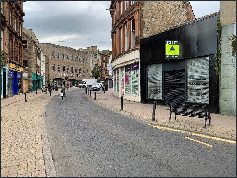 La propriété comprend un bâtiment en maçonnerie à mi-terrasse aménagé sur un seul étage et abritant des commerces de détail. L'établissement est situé à l'extrémité nord de High Street, près de la jonction avec New Bridge Street dans le centre-ville d'Ayr et à quelques pas de la gare d'Ayr.