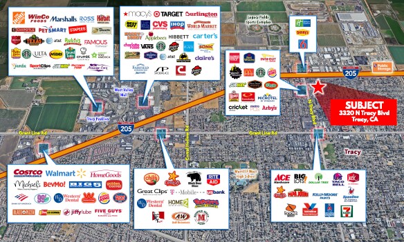 Prime Central Tracy Location Strategically positioned in the heart of the city Excellent Accessibility Quick and convenient access to I-205 Nearby Retail Located along one of the most desirable retail trade areas of Tracy. Other nearby retailers which see over 137,000± cars ADT and is a main thoroughfare to the heart of the Central Valley include: Planet Fitness, New Indian Supermarket, Burger King, Harbor Freight Tools, La Plaza Market, O’Reilly Auto Parts, Subway and McDonald’s