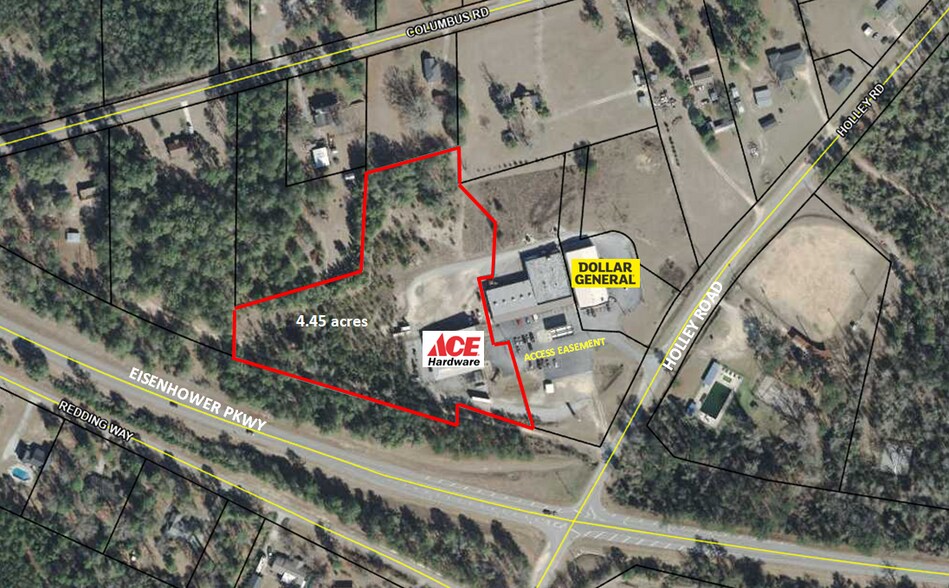 Built in 1999, the commercial building is currently operating as an Ace Hardware store. There is a partially fenced in area on the left rear side of the building with ample parking. To accept large deliveries, there is one roll up door and a man door on that same side. The interior is all wide open with an office, storage room/breakroom, and separate his and her bathrooms. The space can be utilized for many different commercial purposes including retail, warehouse, storage, and industrial flex space. There is a reciprocal driveway access easement in place from the entrance off of Holley Road for vehicular access for customers and delivery drivers. Property sits on 4.45 acres.