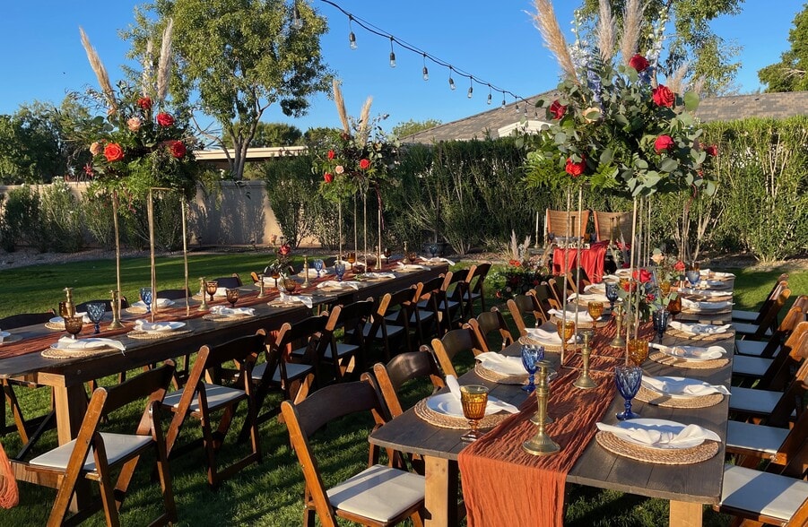 A genuinely rare dual-revenue asset in the heart of Gilbert's premier Baseline Road commercial corridor. This 6,702 SF single-story building sits on a full 1.04 acres. This property is virtually impossible to replicate in this sub-market - and operates simultaneously as a professional multi-tenant office complex during the week and a thriving wedding and special events venue on weekends. Modern Moments, LLC event brand provides immediate income (business for sale separately).