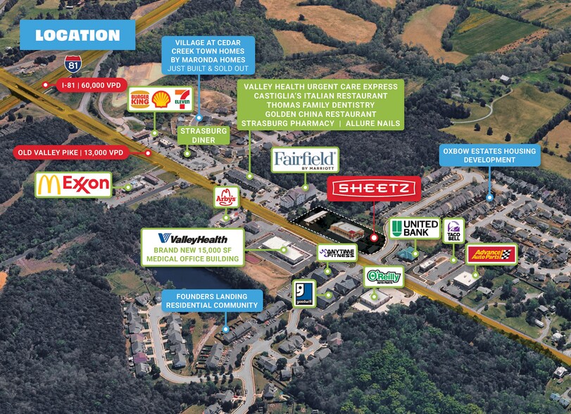 - Strategically positioned directly off I-81 (±60,000 VPD), serving as the primary gateway into Strasburg from the interstate