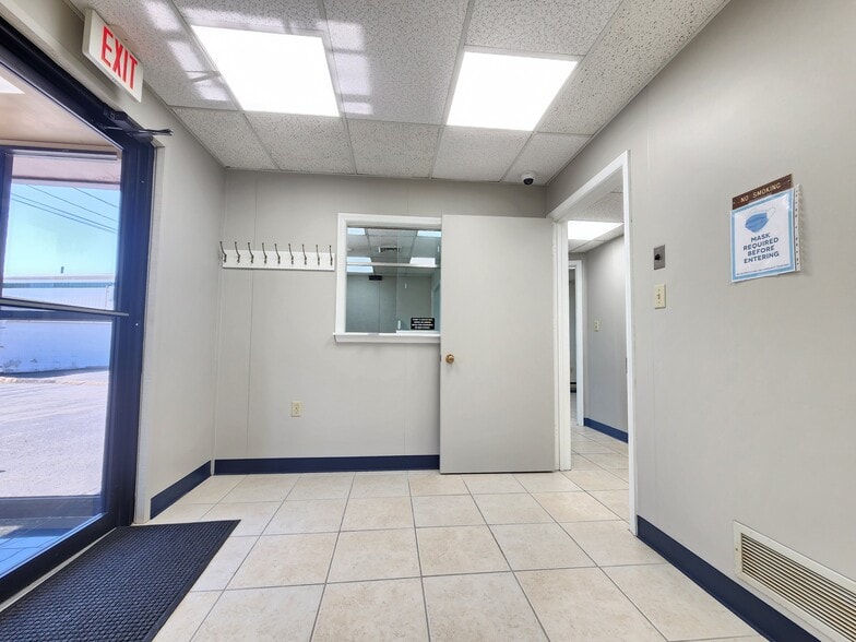 Waiting room with reception window, reception office, 2 treatment rooms with sinks, 2 offices - one with separate exit, one in-suite restroom with pass thru to lab, lab, kitchenette, second in-suite restroom. New windows, alarm system, pre-wired for phone and Ethernet. Within walking distance to fast food restaurants.