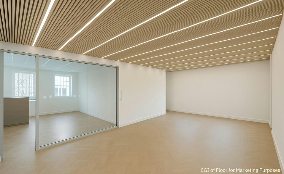 This prime Fitzrovia building has been refurbished to an excellent standard, combining stylish modern finishes with beautiful period features throughout. The available accommodation is positioned towards the rear of the building and comprises unique, characterful studio space arranged over the ground, first and second floors, with an interconnecting knock-through to the adjoining property at first and second floor levels. Currently configured as a recording studio with associated creative offices, the space benefits from comfort cooling (not tested), fitted kitchen, spot and pendant lighting, and internal WCs.