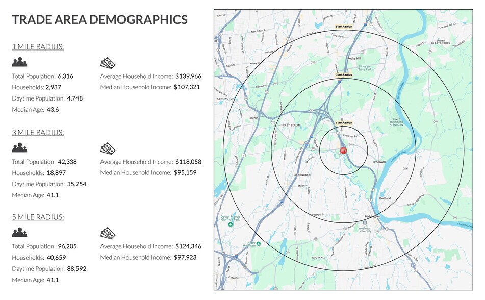 - Approximately 0.4 miles, 3 minutes to I-91