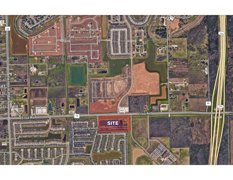 ±18.58 acres with improvements offering prime development potential in the rapidly growing Manvel/Pearland corridor Land divisible, providing flexibility for a range of commercial, mixed-use, or industrial development opportunities Exceptional visibility with approximately 1,335 feet of frontage on County Road 58 Strong traffic counts with approximately 11,313 vehicles per day on County Road 58 (TxDOT 2022) and 80,558 AADT on Highway 288 (TxDOT 2024) Strategic location just minutes from Highway 288, providing quick access to Pearland, Houston, and surrounding communities High-growth area surrounded by new residential communities, schools, and retail developments supporting sustained commercial demand Utilities available and existing improvements in place to support development Ideal site for investors, developers, or owner-users seeking a prominent position in one of Brazoria County’s fastest-growing corridors