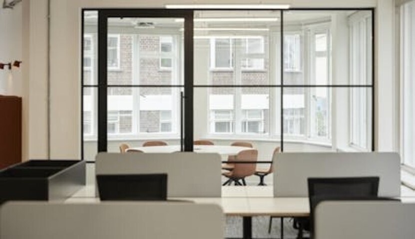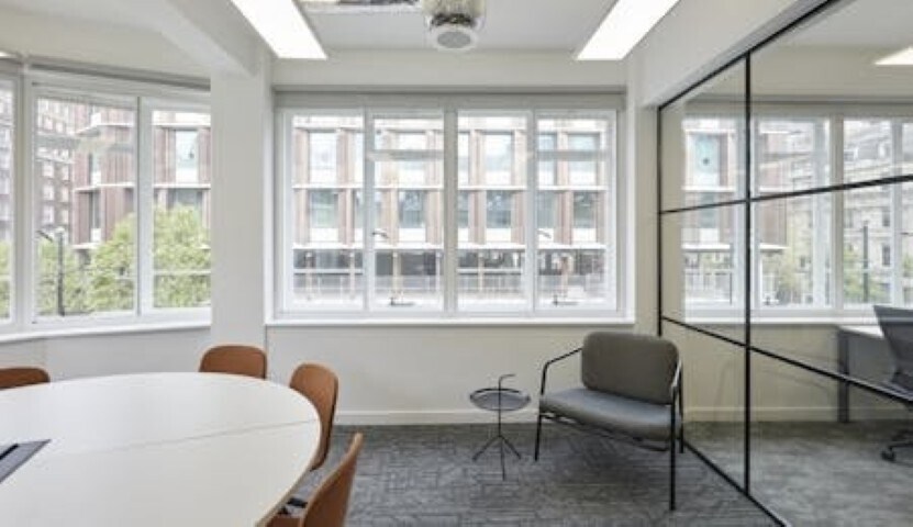 The available accommodation and common parts have been refurbished to a contemporary media-style specification, offering high-quality offices. The floor includes 24 desks, phone booths, a 7-person board room, a 5-person meeting room, hot desks, and a corner aspect with excellent natural light. Additional features include refurbished common parts, new four-pipe fan-coil air conditioning, new showers, and exposed services.