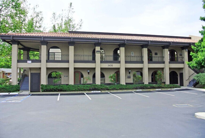 3450 Bonita Road offers ±1,091 SF of professional office space within a ±20,211 SF two-story building in a quiet, park-like setting.