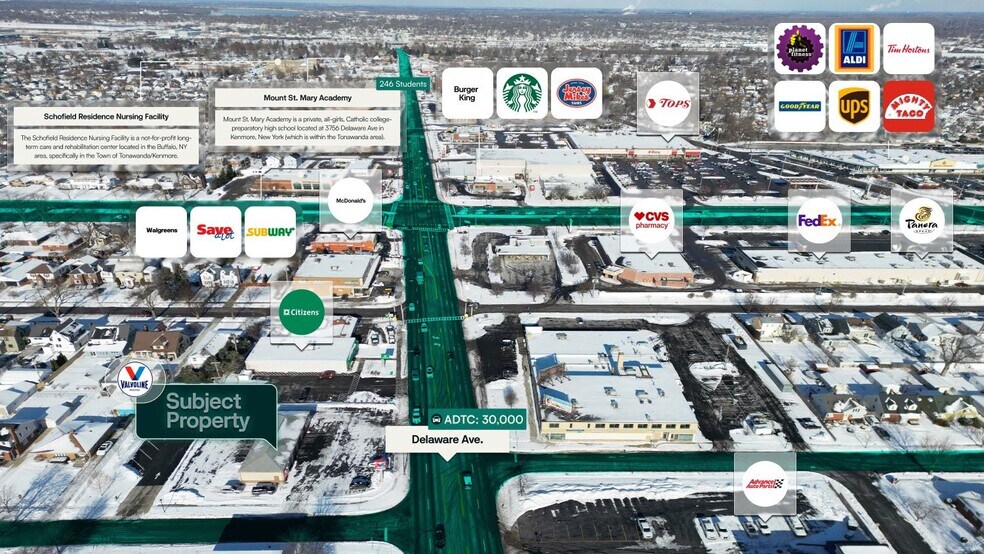 Surmount is pleased to present the exclusive listing for a Valvoline located at 3480 Delaware Avenue, Tonawanda, NY 14217. The site consists of roughly 2,592 rentable square feet of building space on an estimated 0.40-acre parcel of land. Valvoline is subject to an original 20-year Triple Net (NNN) lease, which commenced 10.26.2016. The current annual rent is $88,062 and has scheduled increases of 1.80% Annually.
