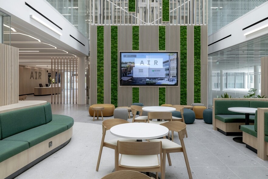 AIR offre une opportunité rare d'occuper un espace de travail exceptionnel au cœur du centre-ville de Solihull. Lors de sa construction initiale, le bâtiment a reçu le prix du meilleur espace de travail commercial du British Council for Offices, mais a récemment fait l'objet d'une rénovation complète visant à actualiser complètement la présentation et les spécifications du bâtiment. Le bâtiment a été amélioré pour améliorer son attrait pour les occupants modernes grâce à la création d'un nouvel auvent extérieur à trois hauteurs, d'un salon d'affaires/café-bar, d'un studio de remise en forme, d'un centre cyclable, d'une douche et de vestiaires de haute qualité et de terrasses sur deux toits offrant une vue imprenable sur le parc Tudor Grange. La durabilité est au cœur de l'amélioration des spécifications du bâtiment dans le but de garantir de faibles coûts de fonctionnement. Le bâtiment a été accrédité WiredScore avec une cote Platine et plusieurs chargeurs rapides pour véhicules électriques seront installés.