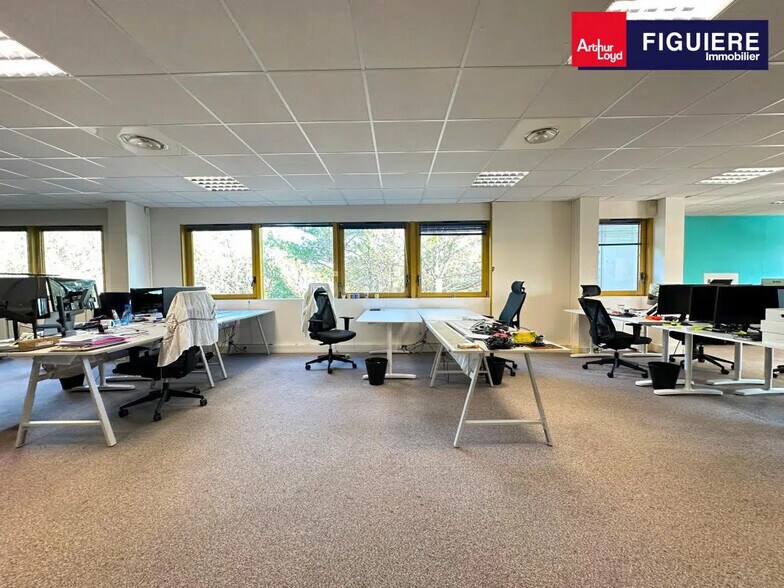 ARTHUR LOYD FIGUIERE IMMOBILIER vous propose une surface de bureaux d'environ 185 m2 au 1er étage d'un immeuble tertiaire. Les locaux se situent au sein d'un Parc tertiaire arboré, calme et facile d'accès. Les locaux sont aménagés en plusieurs espaces et sont équipés de la climatisation réversible en faux plafond. Parc sécurisé avec gardien Environnement boisé de standing, très agréable Facilité d'accès Doubles sanitaires communs sur le palier Digicode à l'entrée des immeubles Fibre Optique sur tout le parc Restaurants sur site Moquette au sol Climatisation réversible en faux plafond Grand open space Espace cuisine 1 bureau fermé 1 salle de réunion Parkings collectifs sur le parc