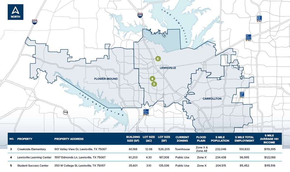 The Property includes an existing ±35,601 SF building which housed specialized education for students and encompasses a full city block only 0.3 miles (8 minute walk) from the heart of Downtown Lewisville. Downtown Lewisville is quickly redeveloping into a walkable urban district with new townhomes, creative office space and eclectic local retailers and restaurants with outdoor patios. The Property is located within an Opportunity Zone.