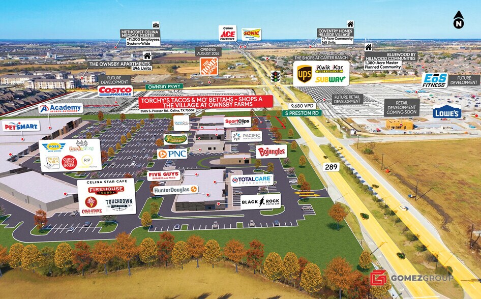 Torchy’s Tacos & Mo’ Bettahs – Shops A at The Village at Ownsby Farms is a brand new, 2025 construction, multi-tenant investment opportunity strategically positioned in the heart of The Village at Ownsby Farms, one of Celina’s newest and largest retail destinations. Situated within the +100 acre master-planned retail development, Shops A is shadow anchored by Costco and Academy Sports, with Lowe’s, EoS and Home Depot directly across the street. The asset is 100% occupied with all 3 tenants on brand new NNN Leases. Situated on a 1.74 Acre Lot with ample parking and drive-thru.
