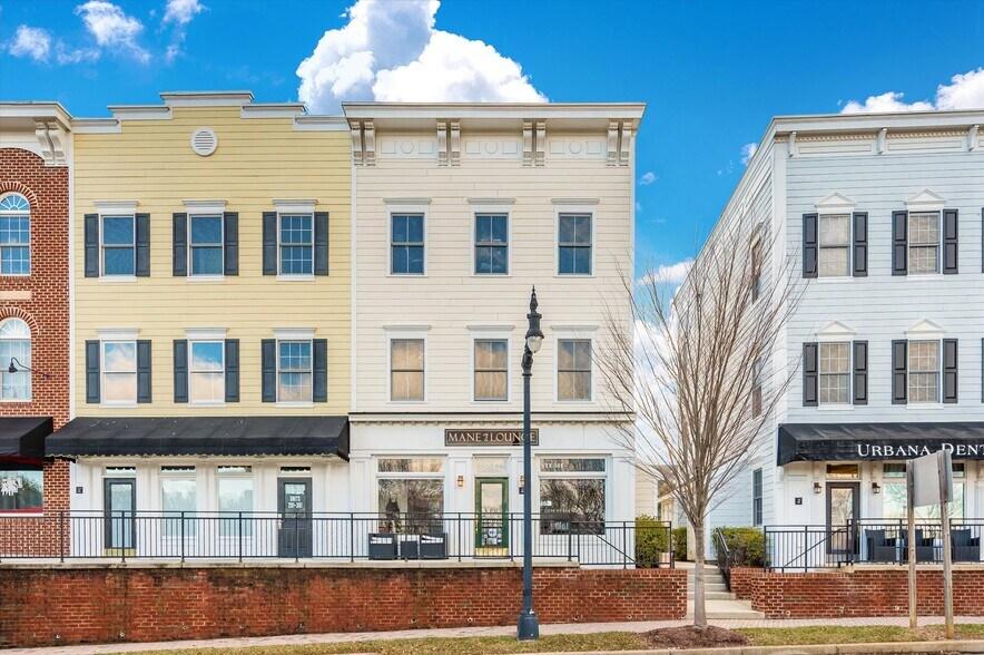Rent the whole building (2,748 ± SF)! The first and second floors and basement (each 916 ± SF) are available now, and the third floor space (916 ± SF) becomes available in September, with plentiful finished storage space. Second level space details: Spacious 916 ± SF second level office/retail condo with open floor plan features wood floors, private office/conference/meeting room, and ample natural light in a popular retail district of the highly sought-after and growing Urbana community. The space would easily work for most types of office/specialty user. Inquire today! Modified gross lease: tenant is responsible for prorated share of utilities.