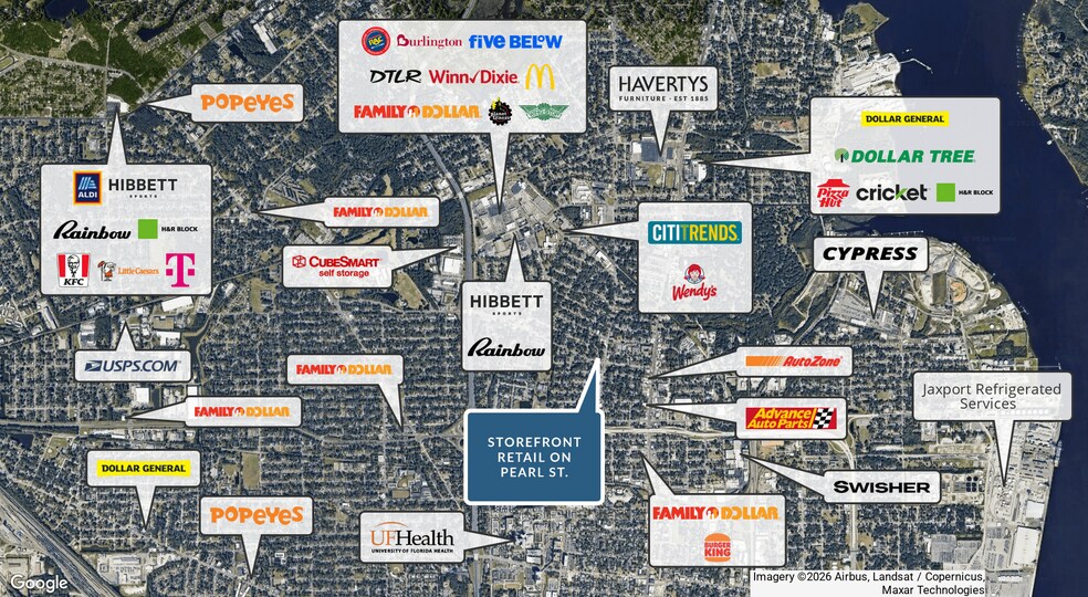 - Positioned in Jacksonville’s urban core with strong street visibility and consistent traffic exposure along Pearl Street.