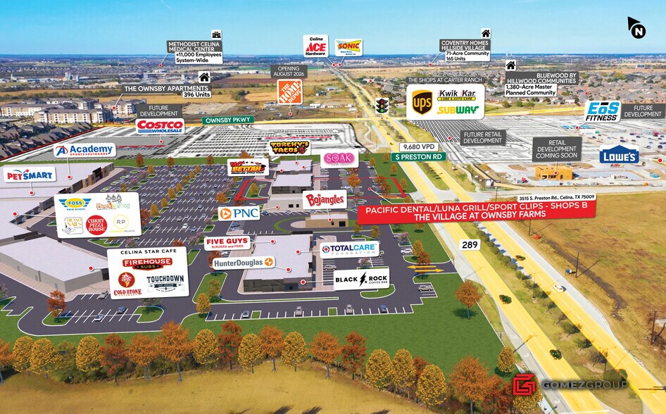 Pacific Dental/Luna Grill/Sport Clips – Shops B at The Village at Ownsby Farms is a brand new, 2025 construction, multi-tenant investment opportunity strategically positioned in the heart of The Village at Ownsby Farms, one of Celina’s newest and largest retail destinations. Situated within the +100 acre master-planned retail development, Shops B is shadow anchored by Costco and Academy Sports, with Lowe’s, EoS and Home Depot directly across the street. The asset is 100% occupied with all 4 tenants on brand new NNN Leases. Situated on a 1.36 Acre Lot with ample parking and drive-thru.