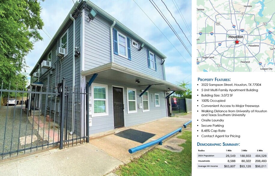 3522 Sampson St Immeuble residentiel 5 lots À vendre Taux de capitalisation 8,48 % Houston, TX 77004
