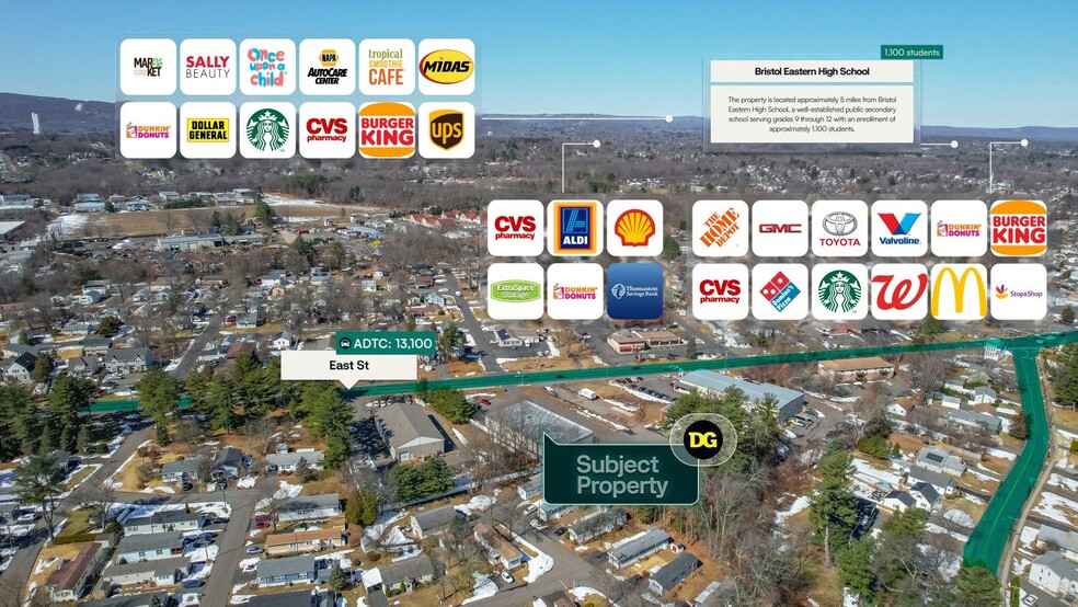 Surmount is pleased to present the exclusive listing for a Dollar General located at 354 East Street, Plainville, CT 06062. The site consists of roughly 9,026 rentable square feet of building space on an estimated 1.12-acre parcel of land. Dollar General is subject to a 15.09-year Double Net (NN) lease, which commenced 4/1/2019. The current annual rent is $106,000 and has scheduled increases of 10.00% In Options.