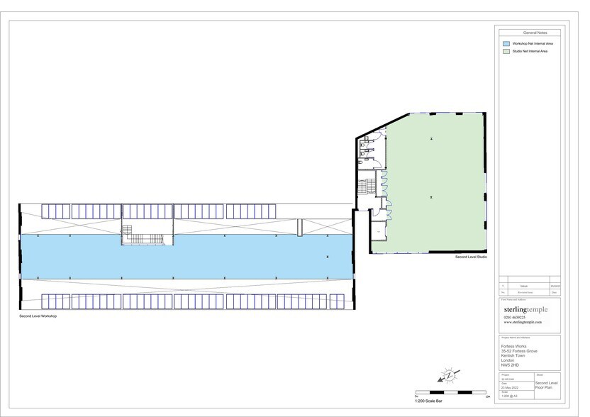 Fortess Works is a captivating transformation of a 1920s warehouse nestled in Kentish Town's core. This Workshop, now available for purchase, presents a unique chance for business owners to acquire a self-contained, design-forward workspace. The space showcases stunning floor-to-ceiling Crittall-style windows, exposed brick walls and impressive ceiling heights. A place for a business to thrive, it offers direct access to an attractive landscaped courtyard, a triple-height entrance lobby, bicycle storage, and high-spec amenities throughout. Situated a stone's throw away from Kentish Town and Tufnell Park stations, Fortess Works positions you at the heart of convenience, culture, and character.