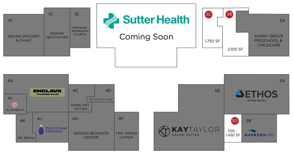 Situé dans un quartier animé de Modesto, en Californie, le Kay Taylor Salon Suites offre une visibilité et une accessibilité excellentes aux clients. Nos suites de salon constituent une option professionnelle et pratique pour un large éventail de professionnels de la beauté, qu'il s'agisse de nouveaux propriétaires d'entreprise ou d'experts établis. Notre emplacement privilégié et notre accessibilité facile aident ces professionnels à développer leur activité et à servir leurs clients avec facilité et commodité. Location de suites de salon RÉSERVEZ UNE VISITE DÈS AUJOURD'HUI ! Êtes-vous un professionnel de la beauté à la recherche d'un espace qui vous soit propre ? Ne cherchez pas plus loin que nos locations de suites salon ! Nous proposons des suites entièrement équipées et personnalisables qui offrent un espace professionnel et privé pour que votre entreprise puisse prospérer. Avec nos locations de suites de salon, vous avez la possibilité de créer un environnement personnalisé qui reflète votre marque et votre style. Nos suites sont idéales pour une variété de professionnels de la beauté, notamment les coiffeurs, les esthéticiens, les techniciens en manucure, les massothérapeutes, etc. Nous offrons un espace de haute qualité et bien entretenu qui vous permet de vous concentrer sur ce que vous faites le mieux : fournir d'excellents services à vos clients. En plus de nos suites salon exceptionnelles, nous proposons également une gamme d'équipements pour soutenir votre activité, tels qu'un grand parking, un accès 24 heures sur 24, 7 jours sur 7 et un espace de réception accueillant pour vos clients. Nous nous engageons à fournir une communauté professionnelle et collaborative qui encourage la croissance et le succès de tous nos professionnels de la beauté. Faites passer votre entreprise au niveau supérieur grâce à nos locations de suites salon. Contactez-nous dès aujourd'hui pour planifier une visite et découvrez par vous-même pourquoi nos suites de salon sont la solution parfaite pour votre entreprise de beauté. Parfait pour les types d'entreprises suivants et plus encore ! Sculpture corporelle Maquillage permanent et tatouages Boutiques Peau et maquillage Spécialistes du maquillage Salons de coiffure Épilation/filetage Maquillage Sourcils Extensions de cheveux Cils Microblading Soin de la peau Épilation Épilation au laser Botox Suites de massage Centres de chiropratique Centres de santé et de bien-être Traitements au laser Salons de coiffure Thérapie sportive Commerce de détail lié à l'industrie de la santé et de la beauté Salons de manucure Services de beauté et vente au détail associée Sourcils/cils Sculpture corporelle Cryothérapie Medspas Boutiques Esthéticienne générale