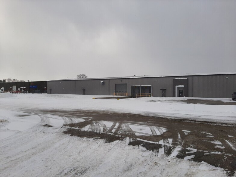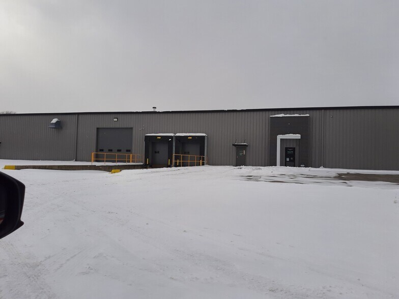 Located on the “6 East” Industrial Campus this 18,000 square-foot facility was renovated in 2025 and boasts a 90’ wide x 200’ clear span space. 20’ eave height. 14’ tall door. 240-volt power. Breakroom. Municipal water and sanitary sewer. 2 recessed truck loading docks with levelers and dock shelters.