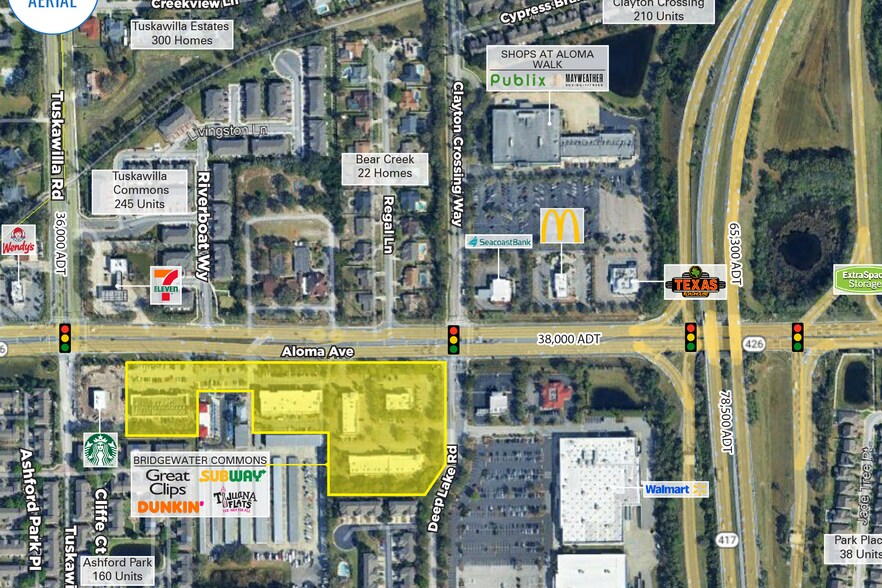 - Located between Tuskawilla Rd and Deep Lake Rd with direct frontage on Aloma Rd (38,000 AADT), Oviedo, FL