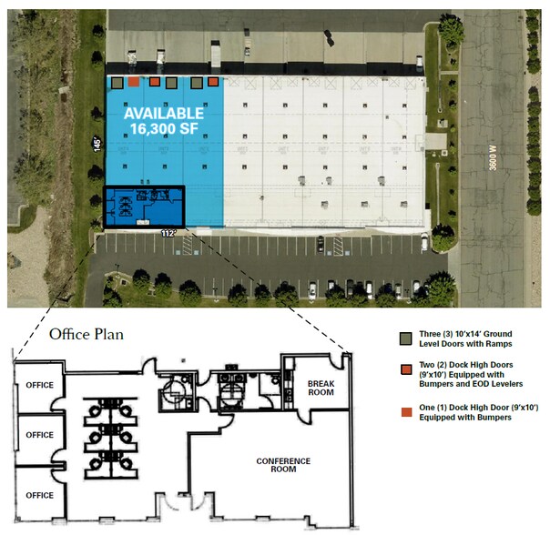 Property Highlights – 16,300 Total Square Feet - 2,601 Office Square Feet - 13,699 Warehouse Square Feet – Three (3) Dock High Doors (9’x10’) Equipped with Bumpers - Two (2) Equipped with EOD Levelers – Three (3) 10’x14’ Ground Level Doors with Ramps – 28’ Clear Height – 250 Amps / 480 /277 3 Phase Power Supply – Fluorescent Lighting in the Warehouse – ESFR Fire Suppression System – Concrete Tilt Construction / Built in 2009 – Gas Forced Air Heat in the Warehouse – Skylights in the Warehouse – New LED Lighting in the Office – New Paint and New Carpet – Zoned: M-1 (light manufacturing) – Prime California Avenue Frontage – Minutes to Salt Lake City International Airport – Excellent Access to Bangerter Highway, Highway 201, I-80, I-215 and I-15