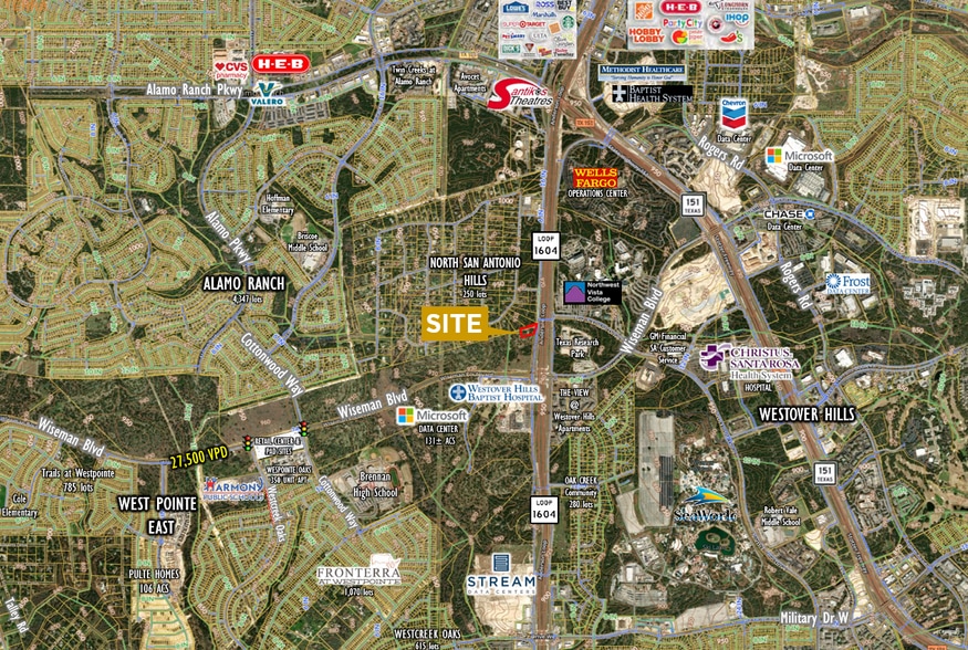Located along the W Loop 1604 N access road on San Antonio’s rapidly expanding far west side, this site provides excellent access to Loop 1604, Wiseman Boulevard, and the thriving Alamo Ranch trade area. The surrounding area is experiencing strong residential and retail growth, with several schools nearby and thousands of newly developed and planned homes.