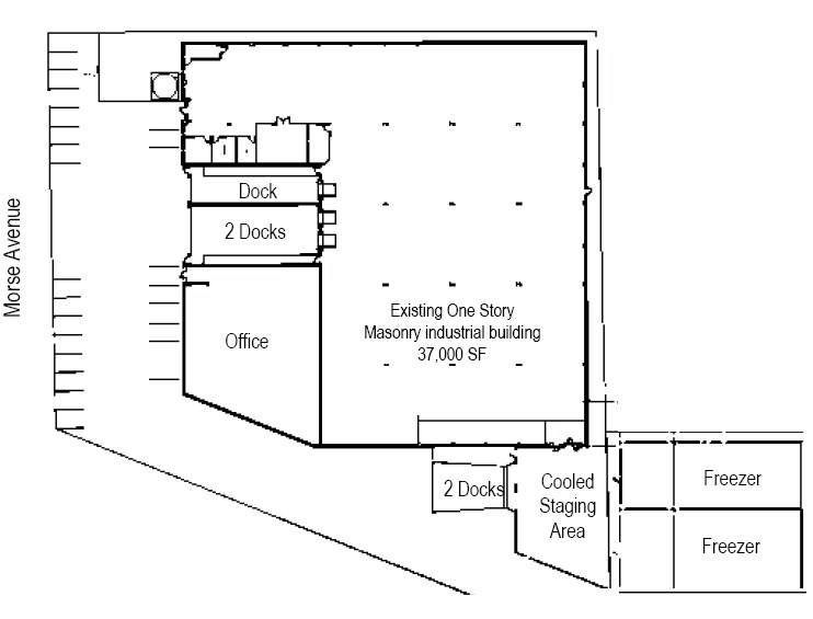 The property features an AIB superior rating, a linear flow and open-bay configuration, and modern, two-story offices. It is in a business friendly Lincolnwood location. The owner will be fully upgrading the fire protection and alamrs to current code. The building is a brick/block production facility with an insulated panel freezer addition in 2000 and 2004. There is a 20' clear production area with a 30' clear freezer (fully racked, three deep, three high, with 800 pallet positions). There are six R-507 chillers (three each for the two freezer sections), with glycol protected floors, and a 34-degree refrigerated shipping vestibule. There are three enclosed truck docks with 8x10 overhead doors, pads, seals, and levelers; two external refrigerated shipping truck docks with 8x10 insulated doors, pads, seals, and levelers; and one 12x14 manual grade-level door, all with concrete aprons. There are two Champion air compressors (130 psi), with one refrigerated air dryer. Also epoxy floors (in the mixing and prep area), an explosion proof boiler room, air out-take wall units, an air make-up unit, gas-fired ceiling units, skylights, interior roof drains, and ceiling fans. There is a fenced foundation pad for bulk ingredient storage and internal distribution.