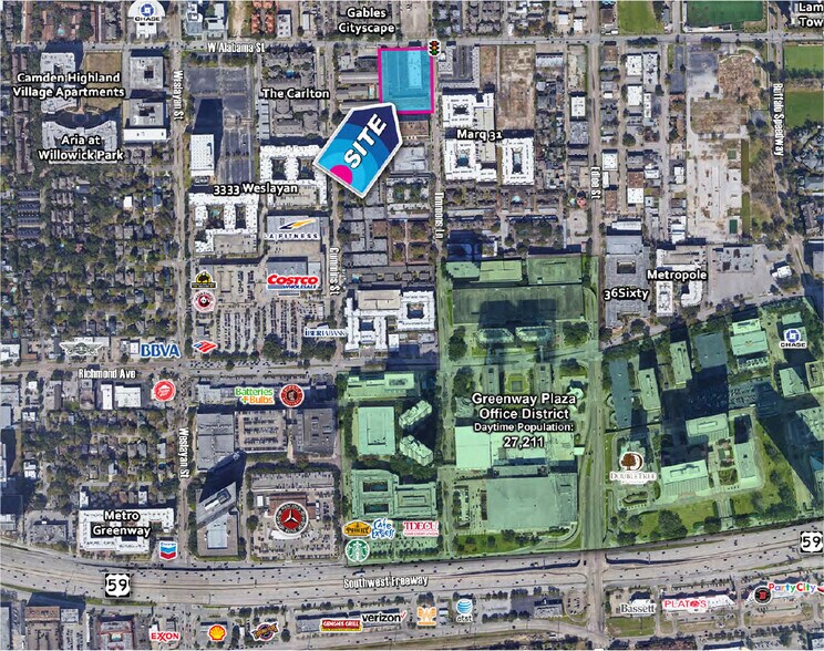 - Juste au nord du quartier des bureaux de Greenway Plaza, avec une population diurne de +/- 27 211 habitants