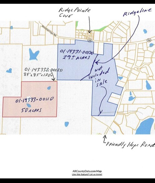 The west 29 acres of parcel 01-143331-00500 and 50 acre parcel 01-143333-00110 in Craighead County, Arkansas. The property is south of RidgePointe Country Club with 693' of frontage along WoodSprings Road, SSE of WoodSprings Rd. and RidgePointe Cove.