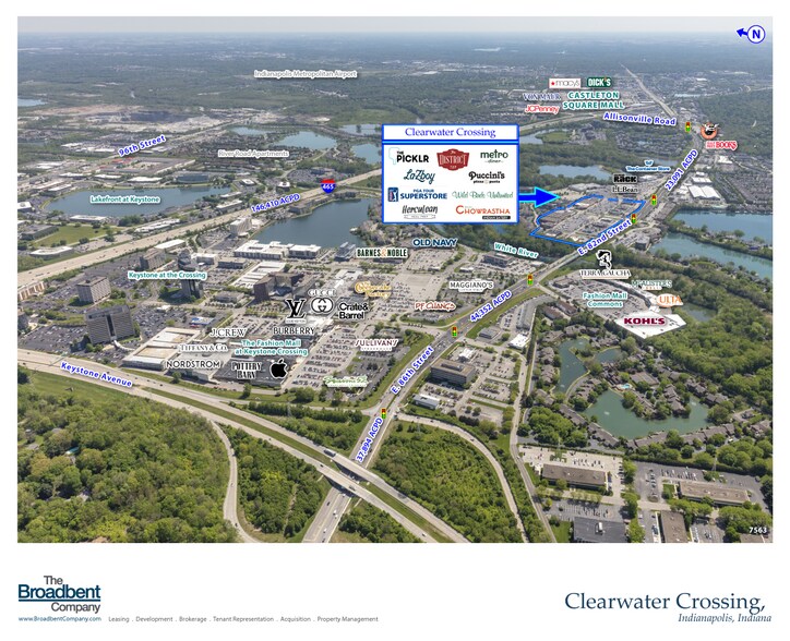 Propriété commerciale à louer. Les principaux locataires incluent La-Z Boy Furniture et PGA Tour Superstore. La zone de Clearwater, au nord d'Indianapolis, est l'une des zones commerciales les plus animées de la ville. Clearwater Crossing se trouve en plein cœur de la région de Clearwater.