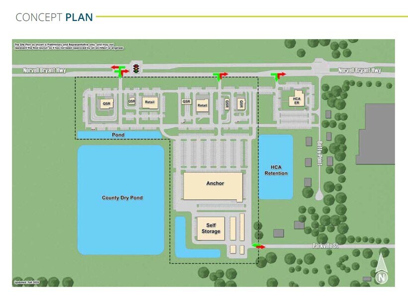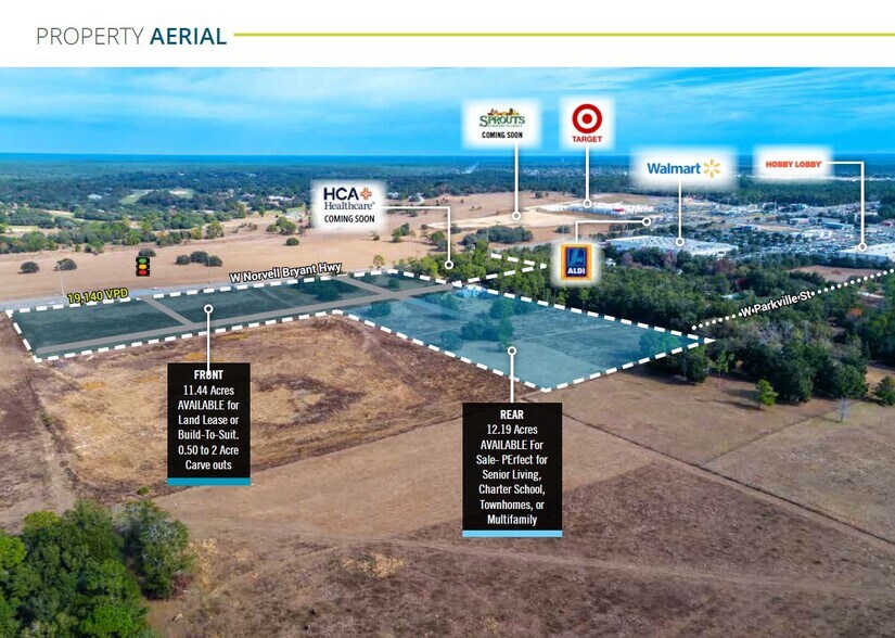Development site on W Norvell Bryant Hwy in Lecanto, FL. Zoned Mixed-Use PUD with full median cut and traffic light access. Front parcels available for lease or build-to-suit; rear acreage suited for senior living, multifamily, or school use.